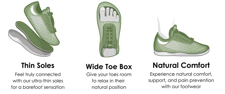 Our barefoot shoes are specially designed to give your feet room to breathe and move, just as nature intended. Not only do they enhance the strength and flexibility of your arches, but they also align your body for natural stability and balance.